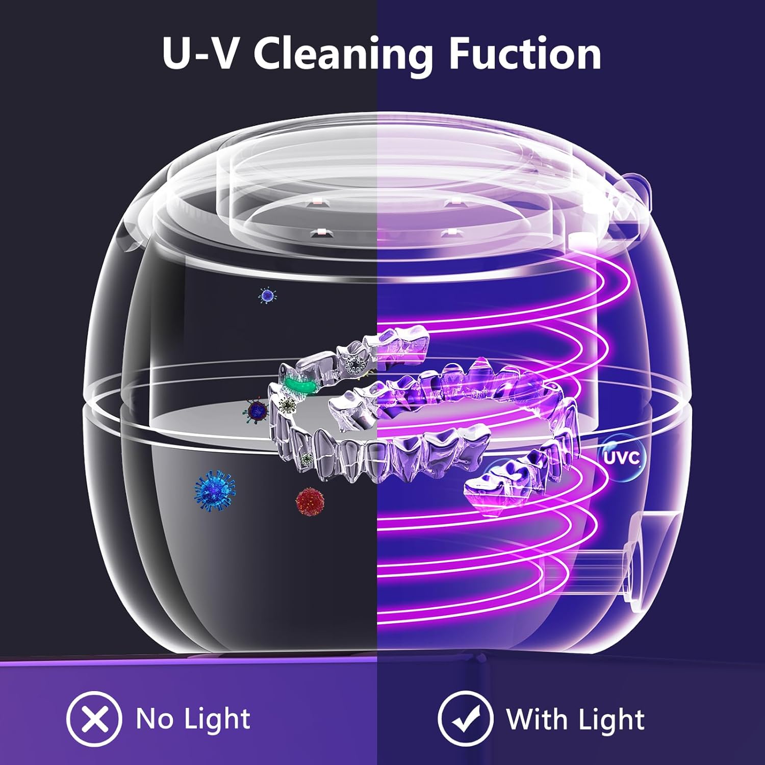 Whether you're at home or traveling, keeping your retainer clean is no longer a chore. Our sleek design fits easily into your luggage, ensuring you maintain your dental hygiene wherever you are, with no extra effort required.